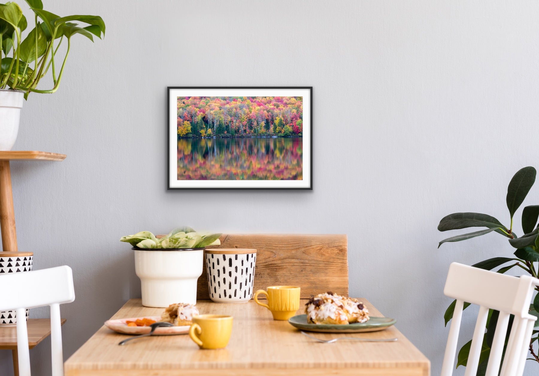 The only thing better than a hillside of peak fall color is it being reflected back to you on from a perfectly still, calm lake. It's a classic shot for a reason. From a distance she may look like an abstract painting with swaths of color, but up close you can see the symphony of colors that create the quintessential autumn hillside. In your home, this photograph will serve as a reminder to seek out the calm, because beauty can be found there.