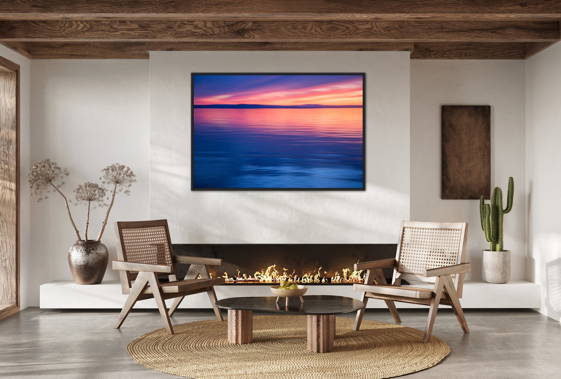 Canvas are thick gallery-wrapped canvas prints with high quality pigment inks, ready to hang. They come with a white or black float frame included.
