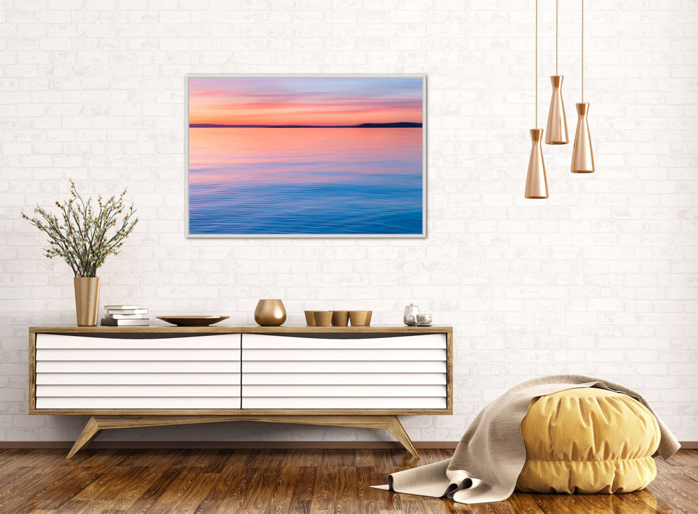 Canvas are thick gallery-wrapped canvas prints with high quality pigment inks, ready to hang. They come with a white or black float frame included.