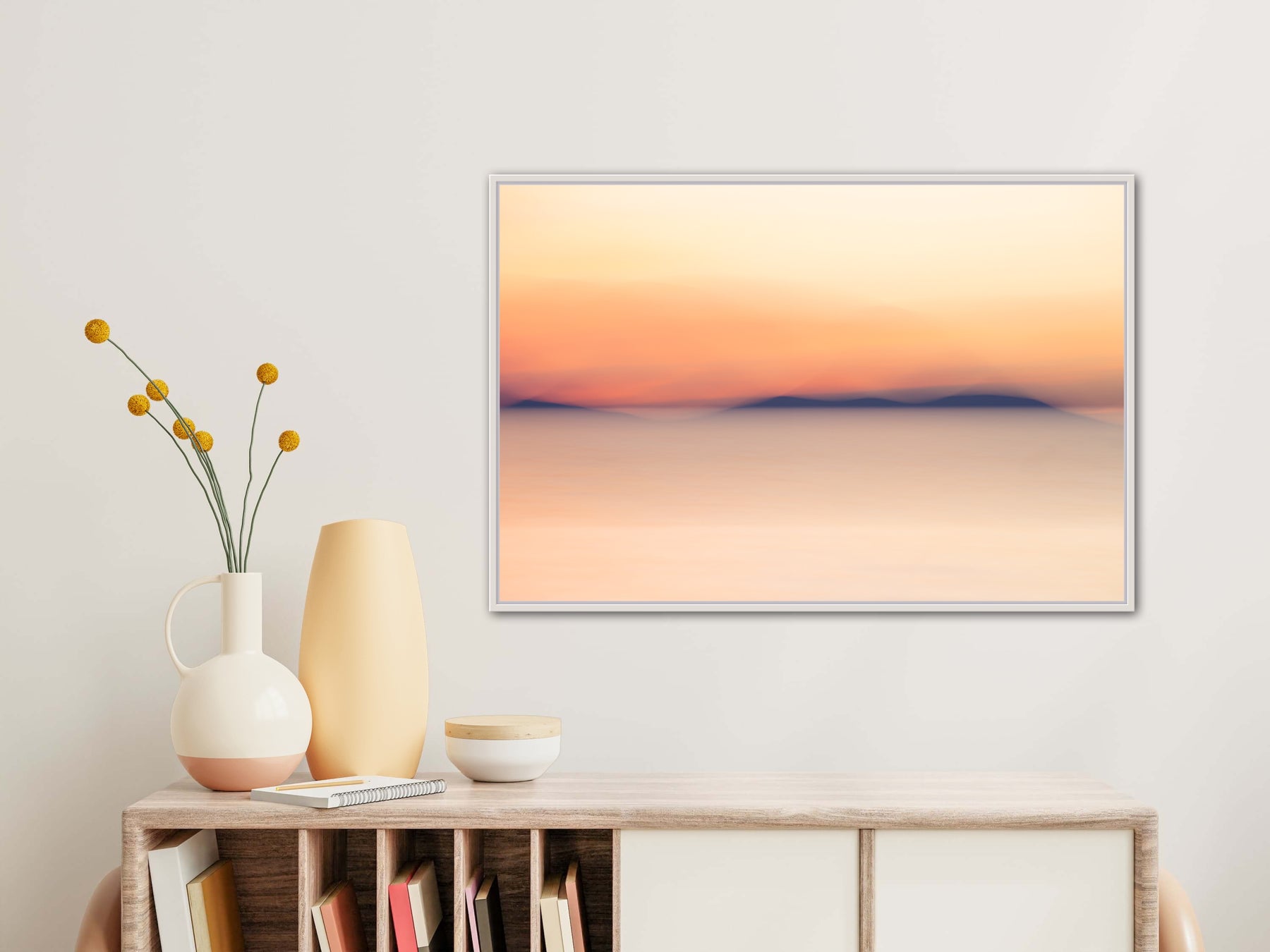 Canvas are thick gallery-wrapped canvas prints with high quality pigment inks, ready to hang. They come with a white or black float frame included.